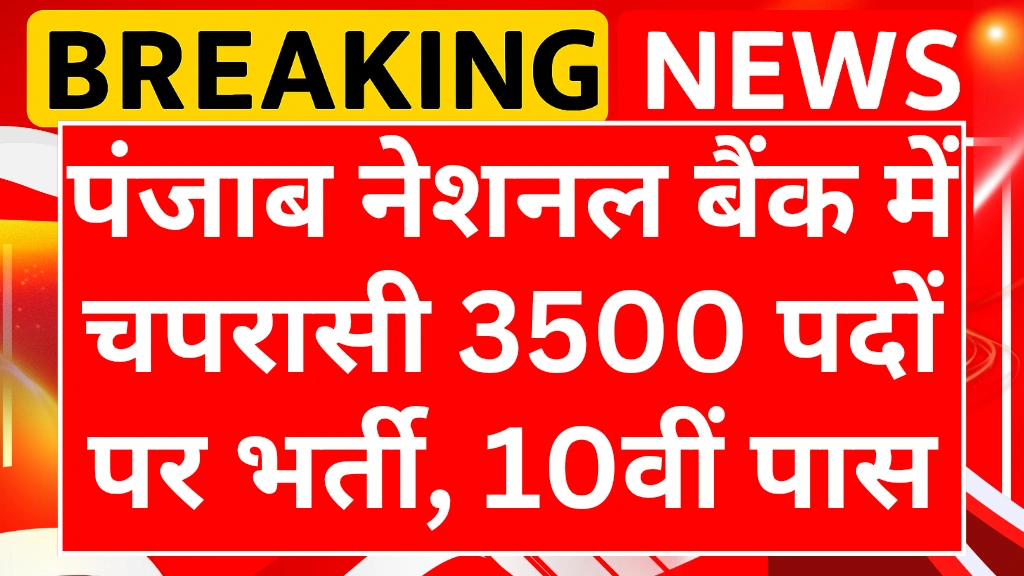 अगर आप बैंकिंग सेक्टर में सरकारी नौकरी की तलाश कर रहे हैं, तो पंजाब नेशनल बैंक ने आपके लिए एक शानदार मौका दिया है। PNB Bank Peon Recruitment 2025 के तहत बैंक ने देशभर की विभिन्न शाखाओं में कुल 3500 चपरासी (Peon) पदों पर भर्ती प्रक्रिया शुरू कर दी है। यह भर्ती पूरी तरह स्थाई आधार पर होगी और इसके लिए उम्मीदवारों से ऑनलाइन आवेदन मांगे गए हैं। इस भर्ती में चयन बिना किसी लिखित परीक्षा के किया जाएगा। उम्मीदवारों का चयन योग्यता, दस्तावेज़ सत्यापन और मेरिट लिस्ट के आधार पर होगा। आवेदन की अंतिम तिथि 15 दिसंबर 2025 तय की गई है और चयनित उम्मीदवारों को ₹35,600 प्रतिमाह तक का वेतन मिलेगा।